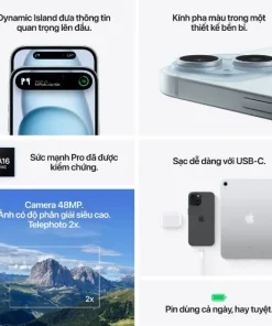 Thông số kỹ thuật camera trên iPhone 15 có sự thay đổi lớn so với dòng iPhone trước đó, với camera chính 48MP và camera siêu rộng 12MP. Máy còn có khả năng quay phim 4K@60fps và HDR, đem đến những đoạn video chất lượng cao và tái hiện màu sắc một cách chân thực và sống động.