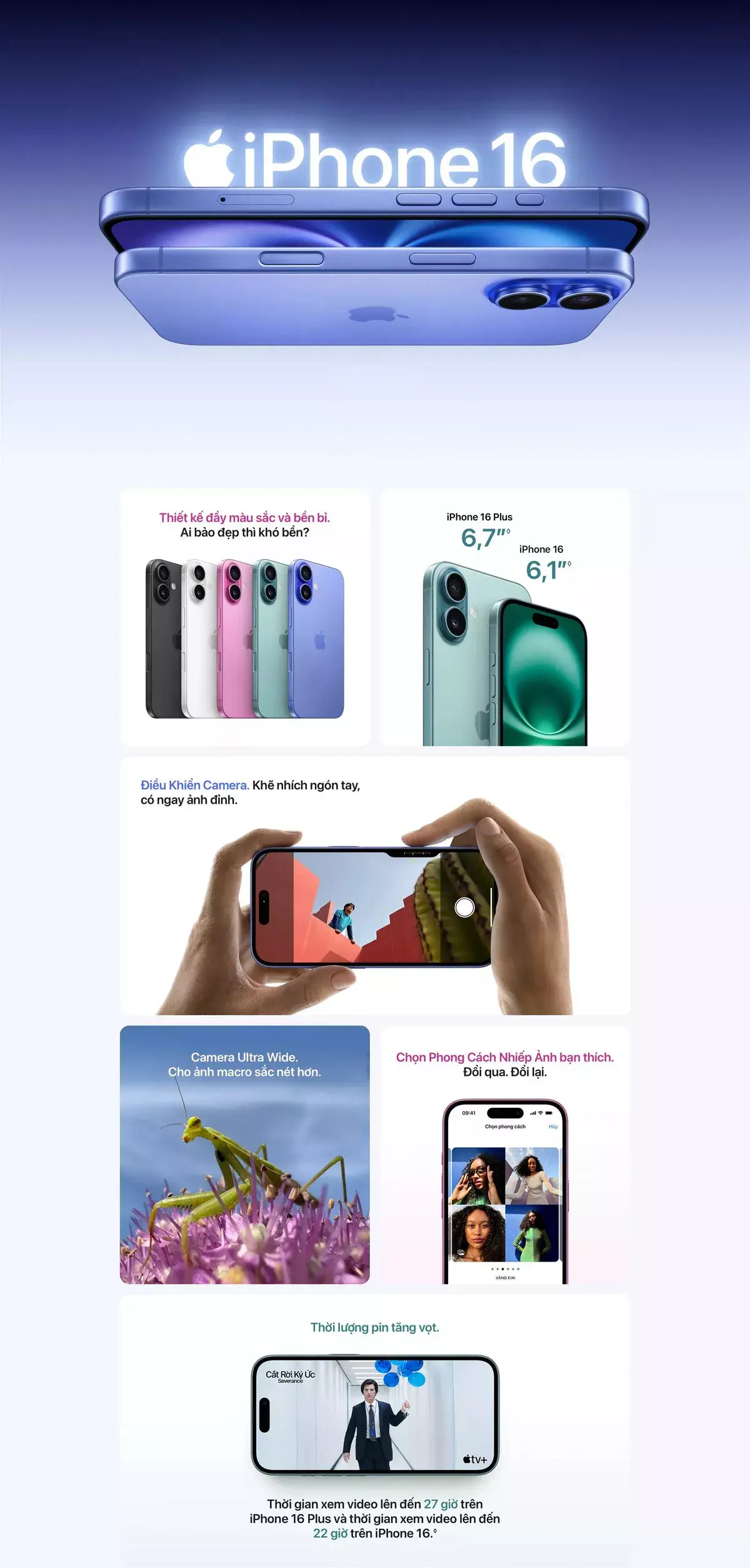 iPhone 16 256GB: phiên bản nâng cấp bộ nhớ của dòng tiêu chuẩn