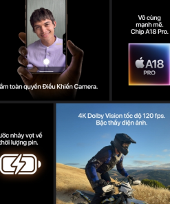 iPhone 16 Pro Max là phiên bản di động cao cấp nhất của Apple năm 2024 với nhiều cải tiến chưa từng có: màn hình nâng lên 6.9 inches, màn kính Gốm Ceramic Shield bảo vệ x2 lần, zoom quang 5x, chip A18 Pro 6 lõi thêm 16 lõi Neural Engine cung cấp cho di động sức mạnh như một chiếc PC bỏ túi.